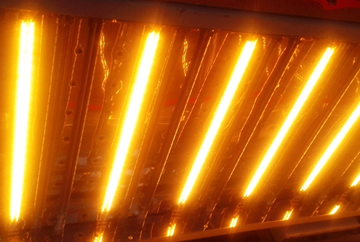 為了更大效能利用熱能,節約電費開支成本,降低單條爐體開機總功率,以及縮短熱爐時間,通過紅外線中短波紅外線加熱管,以及變頻節能電控系統,以實現節能≥15%的效果。